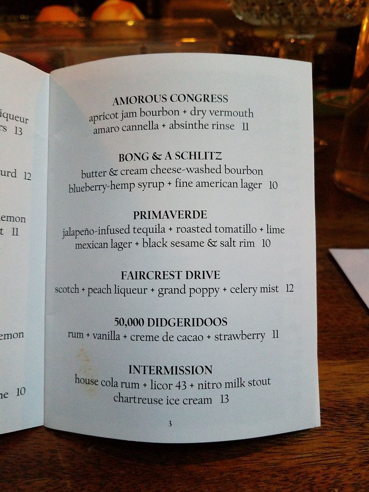 Applejack, cinnamon, stone pine liqueur apple & maple syrup, lemon, a whisper of absinthe & flame